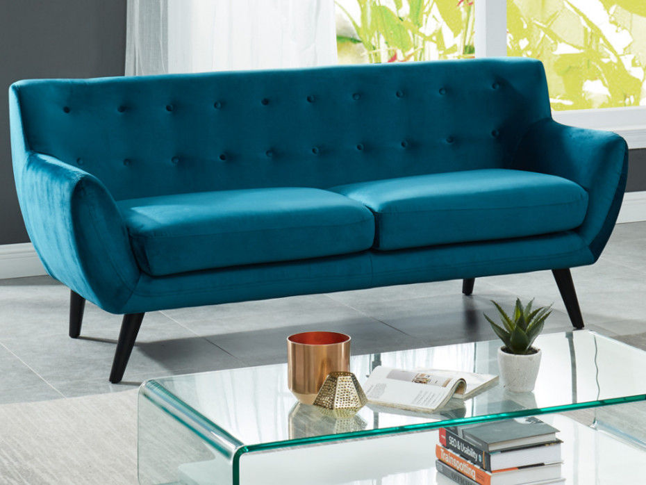 On démarre par ce canapé de style scandinave qui possède une particularité : il est en velours. Peu courant pour un canapé de ce style. Pas soldé mais à un prix imbattable et bien noté par les acheteurs. Il existe dans plusieurs coloris aussi et surtout il est proposé en QUANTITE LIMITEE.